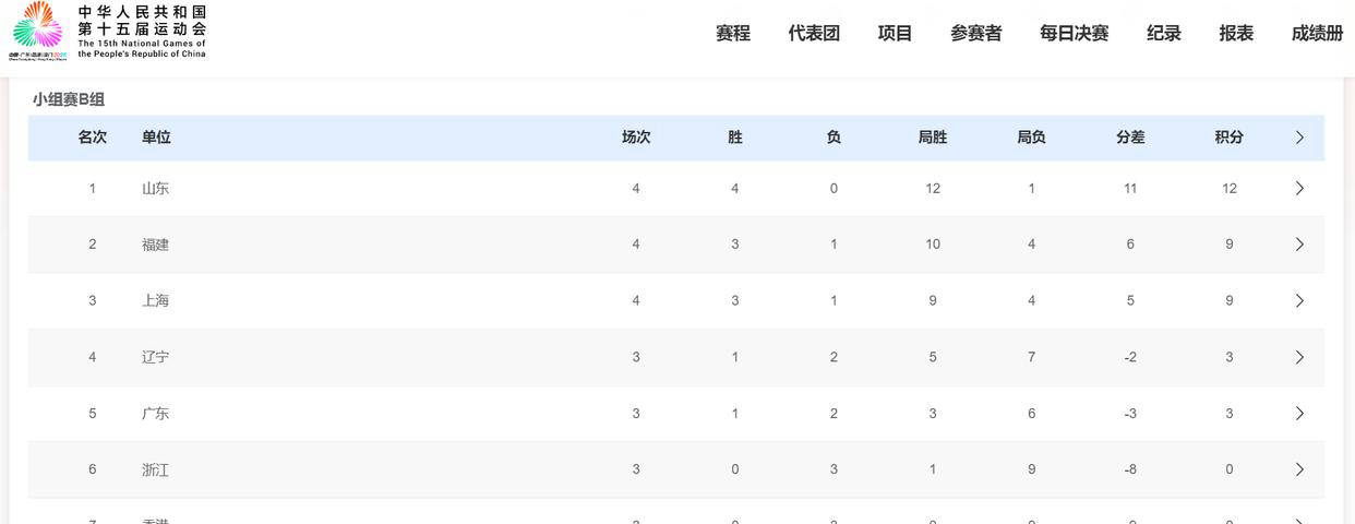 大湾区全运会女排成年组的激烈竞争正在进行中!目前A组中,江苏和河南队均以4连胜领先;而北京和天津队表现为2胜1负。在B组,山东队以四连胜领跑,福建和上海队表现为3胜1负,四川、浙江、香港和澳门队则尚未获胜。本次比赛第四天于11月11日进行,全部六场比赛为三局两胜制。具体比分如下:
