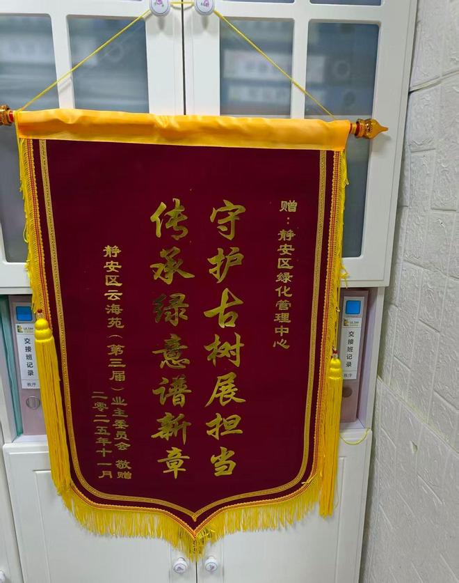 “这五棵古树是我们云海苑的一个招牌,居民们平时都很引以为傲的。”云海苑小区物业方表示,专业部门的改造受到了居民的广泛欢迎与支持。记者了解到,小区业委会甚至专门订制了一面写有“守护古树展担当,传承绿意谱新章”的锦旗,赠与区绿化市容管理部门。